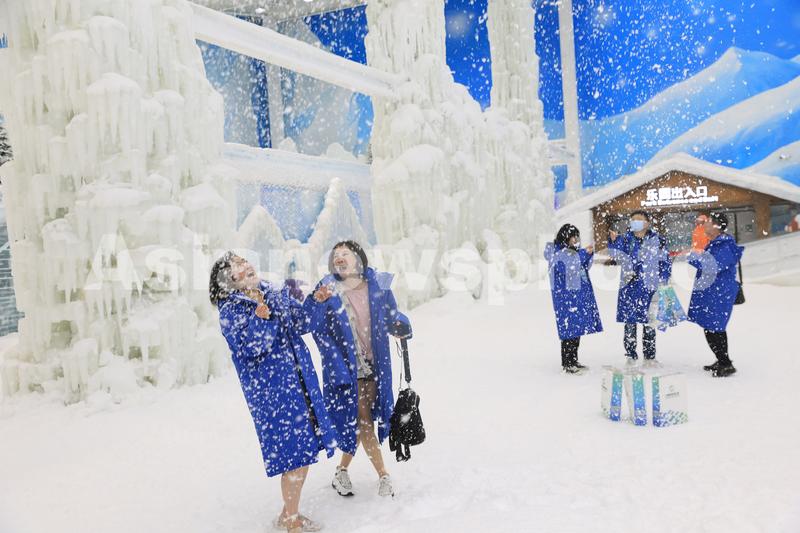 图片说明:2023年6月21日,游客在江苏南通森迪冰雪乐园赏冰玩雪,感受“冰雪世界”的魅力。