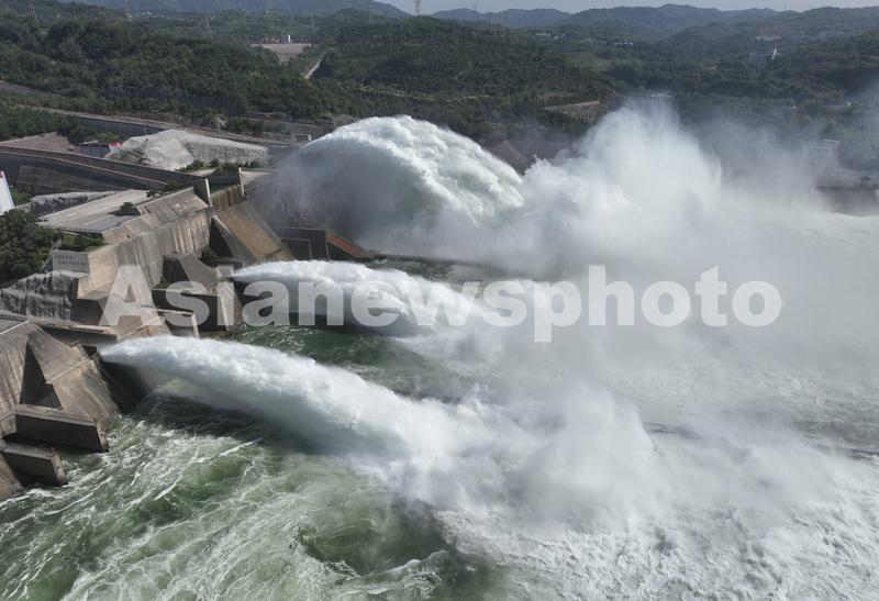 图片说明:2023年6月23日,在黄河小浪底水利枢纽工程出水口拍摄的调水调沙景观。