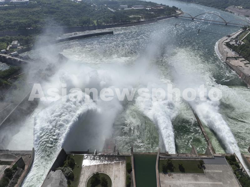 图片说明:2023年6月23日,在黄河小浪底水利枢纽工程出水口拍摄的调水调沙景观。