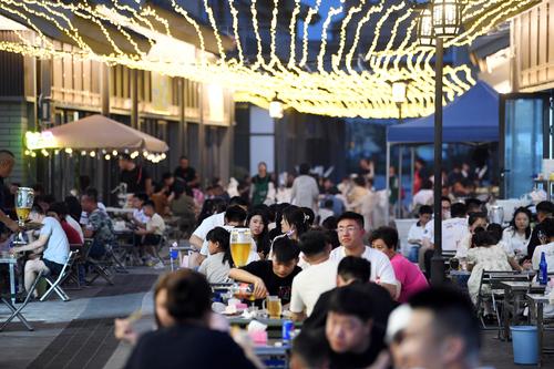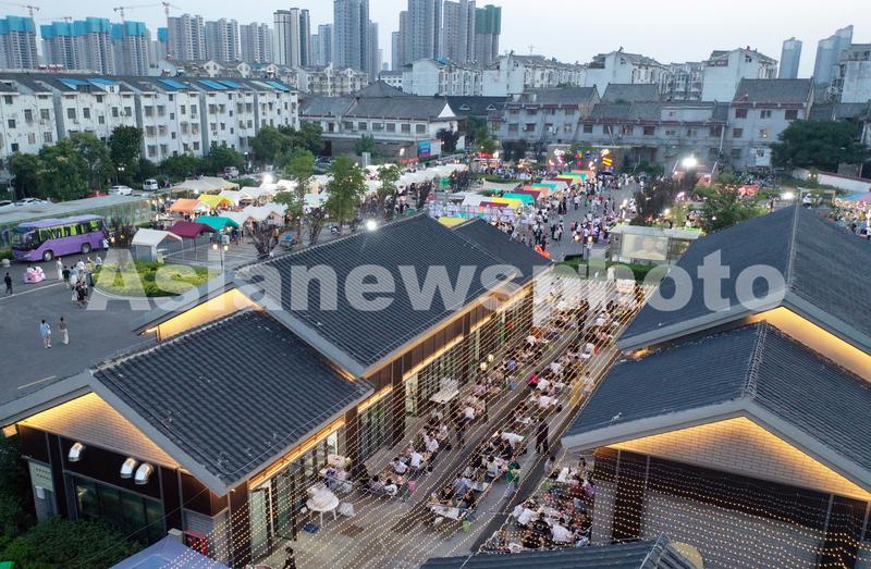 图片说明:2023年6月24日晚,安徽省亳州市谯城区熟皮坑夜市,市民在休闲游玩品美食,“烟火气”十足。