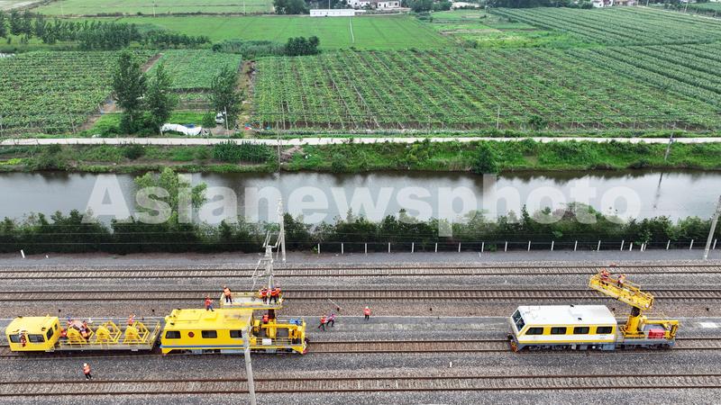 2023年6月26日,中铁电气化局运管公司上海维管处南京维管段施工人员对京沪铁路下蜀站进行整锚段接触线更换。