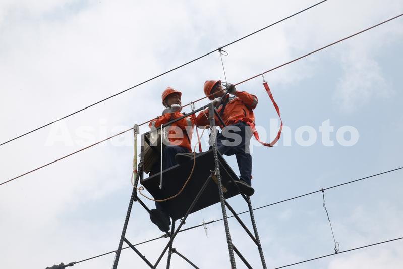 2023年6月26日,中铁电气化局运管公司上海维管处南京维管段施工人员对京沪铁路下蜀站进行整锚段接触线更换,作业人员对接触网吊弦进行安装。