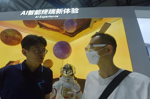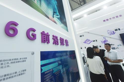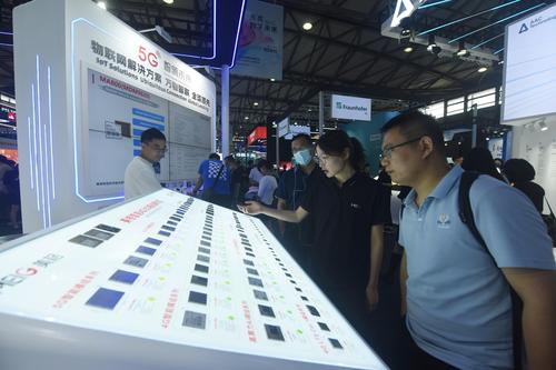 2023年6月28日,观众在2023上海世界移动通信大会上参观了解紫光展锐推出的有关6G技术。