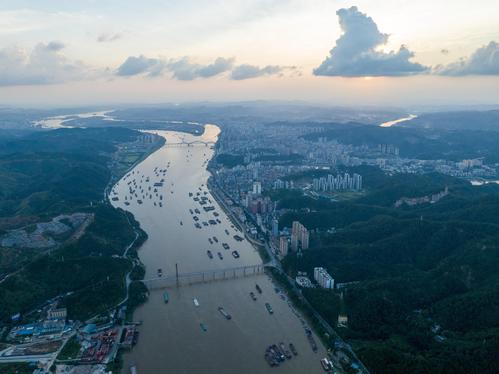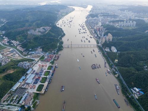 2023年6月28日,在广西梧州市区西江段水域,众多货轮来来往往,一派繁忙景象。作为珠江流域重要水上门户,西江是我国西南出海水路运输大通道,承载广西内河航运90%的运量,大量煤炭、水泥等资源经此运往粤港澳大湾区。近年来,当地大力建设防洪堤工程,黄金水道不断畅通,形成产业集聚亮丽风景线,为珠江、西江经济带高质量发展提供了强劲动力。