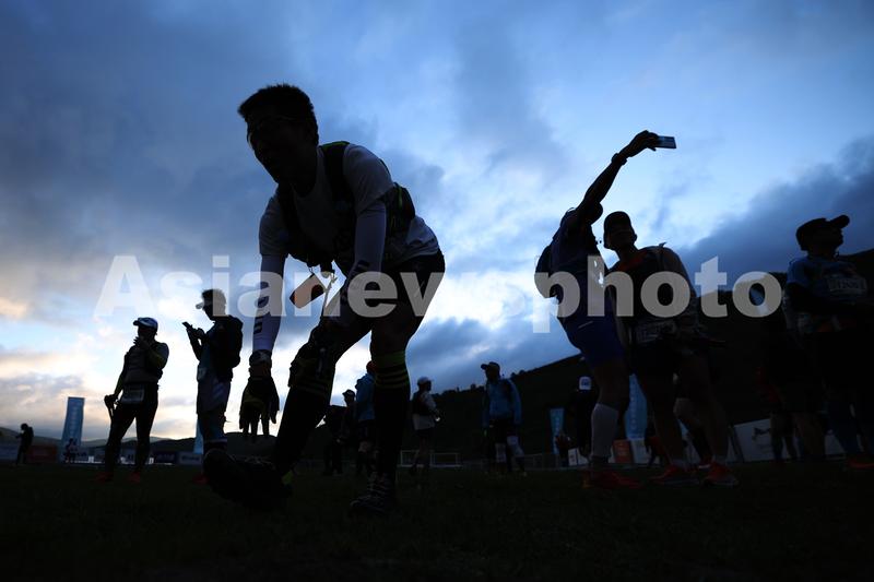图片说明:2023年7月8日,50公里组,选手们出发前热身。