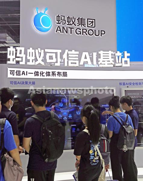 2023年7月7日,上海,蚂蚁集团携支付宝参展2023世界人工智能大会,展示可信AI基站、与清华大学合作的蚁鉴AIGC安全性测评等领域开发成果。