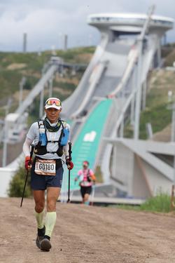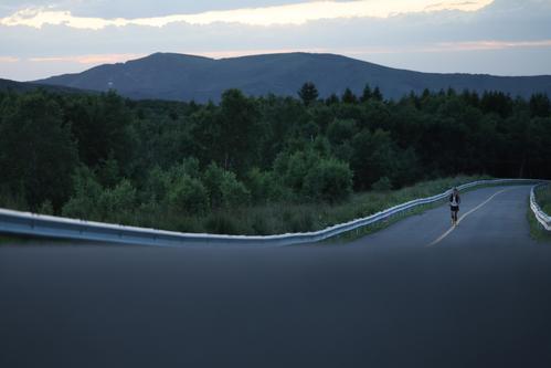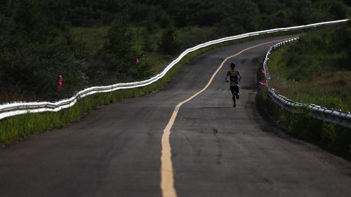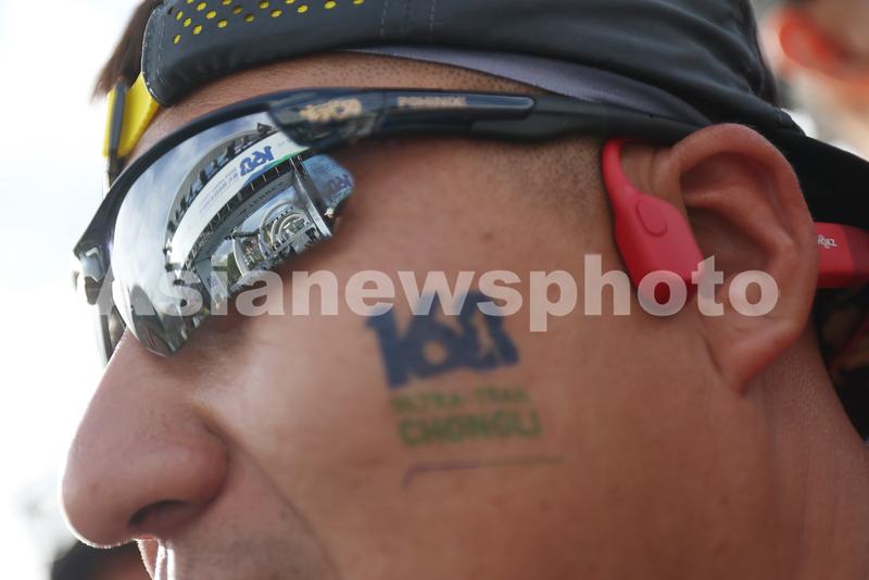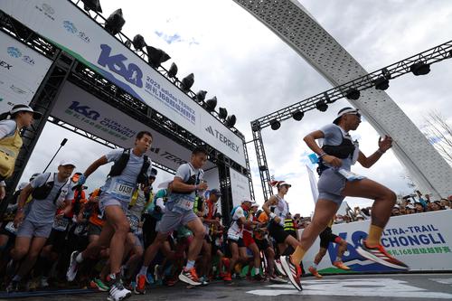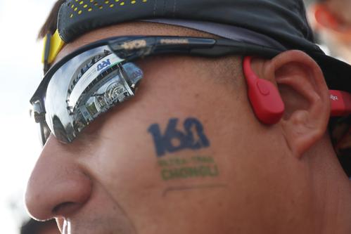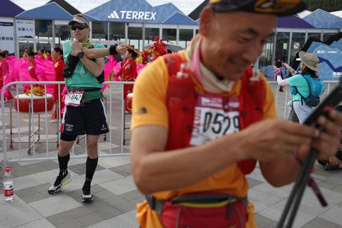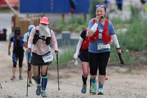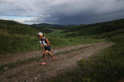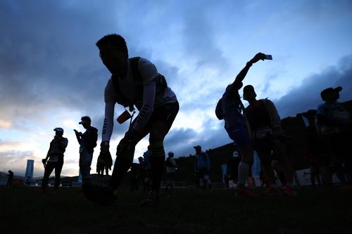 图片说明:2023年7月7日,100公里组,一名选手准备出发。