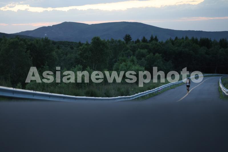 图片说明:2023年7月6日,200公里组,一名选手在公路上奔跑。