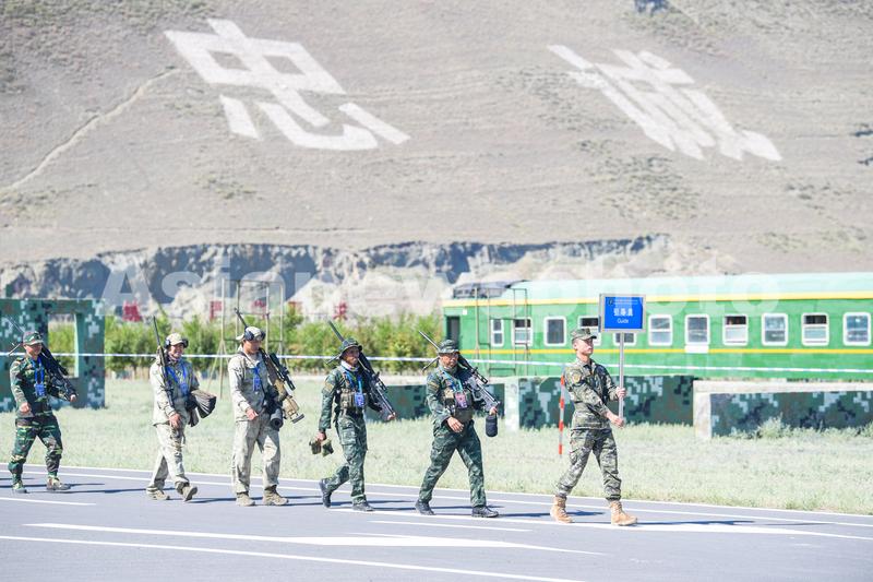 7月12日,”锋刃-2023“国际狙击手射击竞赛在乌鲁木齐武警某训练基地开幕。图为参赛选手转场参加下一个比赛课目。安晓惠 摄