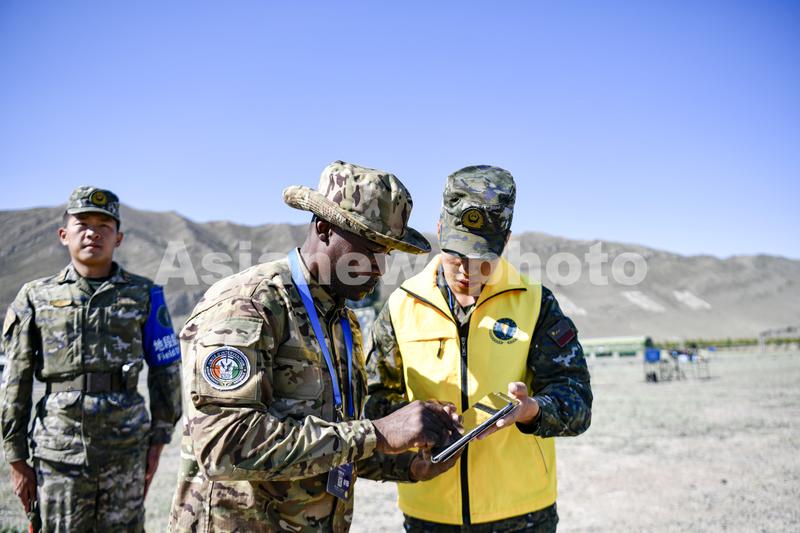 2023年7月12日,“锋刃-2023”国际狙击手射击竞赛现场,参赛队员确认成绩。(侯崇慧摄)