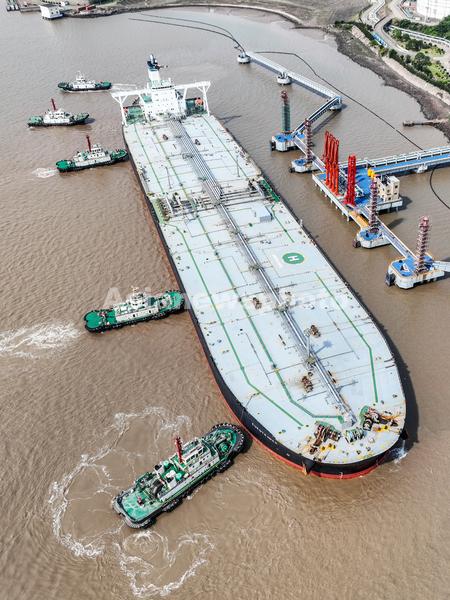 2023年7月13日上午,来自阿联酋的利比里亚籍30万吨级原油船舶“欧洲商人”缓缓驶入宁波舟山港老塘山港区,靠泊册子岛实华原油码头,将在实华原油码头进行11.27万吨的原油卸载作业。