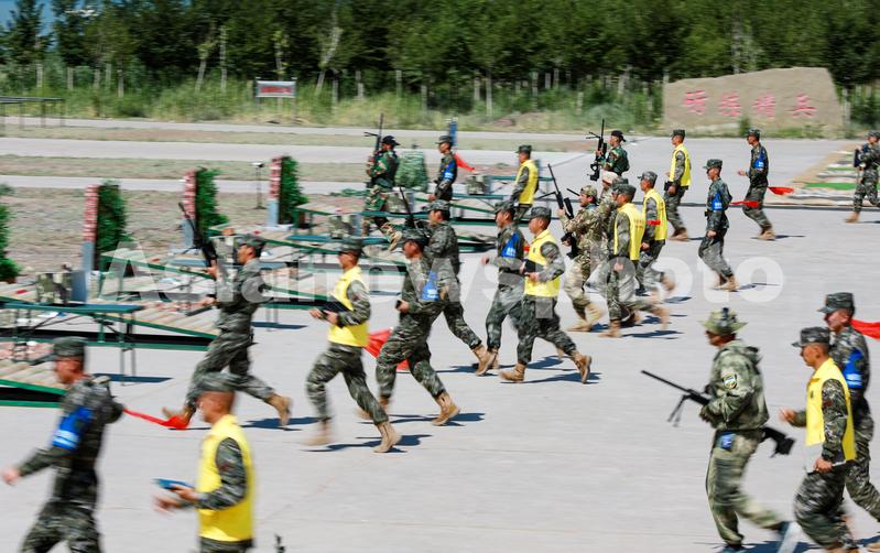 2023年7月12日,在新疆乌鲁木齐武警某训练基地,参赛队员在多种姿势狙击课目竞赛中跃进射击地线。(侯崇慧摄)
