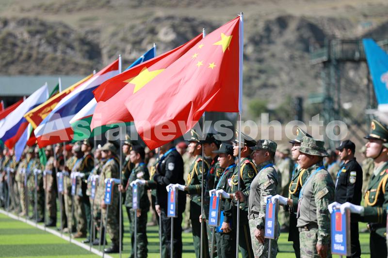 2023年7月12日,“锋刃-2023”国际狙击手射击竞赛开幕现场,各参赛队员蓄势待发。侯崇慧 摄