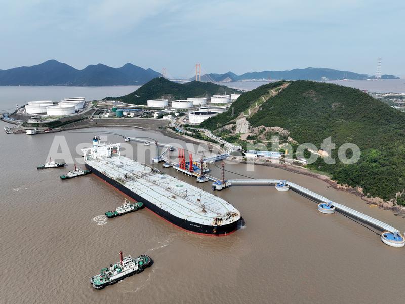 2023年7月13日上午,来自阿联酋的利比里亚籍30万吨级原油船舶“欧洲商人”缓缓驶入宁波舟山港老塘山港区,靠泊册子岛实华原油码头,将在实华原油码头进行11.27万吨的原油卸载作业。