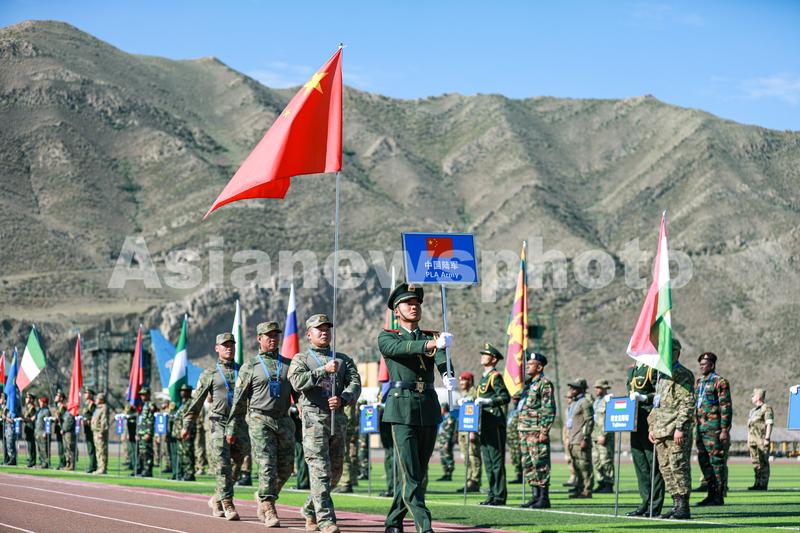 2023年7月12日,“锋刃-2023”国际狙击手射击竞赛在乌鲁木齐武警某训练基地开幕,图为中国陆军参赛选手入场。侯崇慧 摄