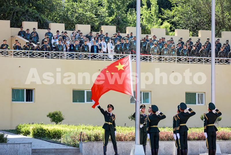 2023年7月12日,“锋刃-2023”国际狙击手射击竞赛开幕现场,举行升国旗仪式。侯崇慧 摄