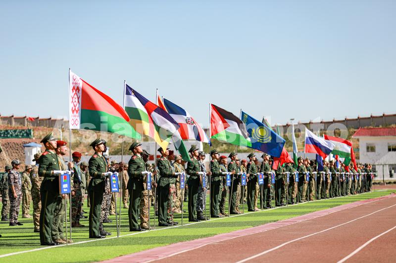 2023年7月12日,“锋刃-2023”国际狙击手射击竞赛开幕现场,各国参赛队员蓄势待发。侯崇慧 摄