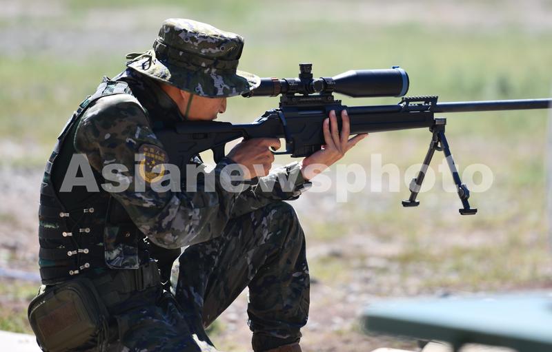 参赛队员正在进行多种姿势狙击课目竞赛。徐伟 摄