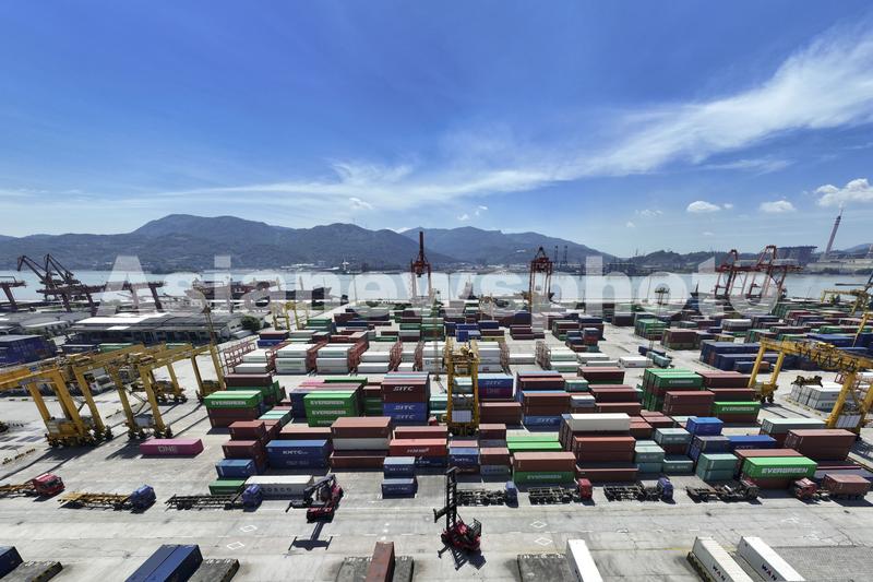 图片说明:2023年7月13日,位于福建省福州市马尾区的福州青州集装箱码头,堆场码放的集装箱货柜。
