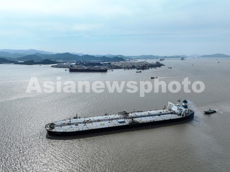 2023年7月13日上午,来自阿联酋的利比里亚籍30万吨级原油船舶“欧洲商人”缓缓驶入宁波舟山港老塘山港区,靠泊册子岛实华原油码头,将在实华原油码头进行11.27万吨的原油卸载作业。