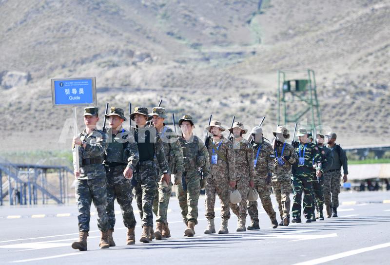 7月12日,”锋刃-2023“国际狙击手射击竞赛在乌鲁木齐武警某训练基地开幕。图为参赛队员步入射击场。徐伟 摄
