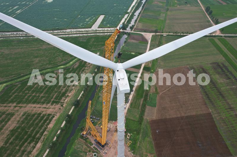 安徽阜阳:安装风电机组助力绿色新能源发展 查看组图