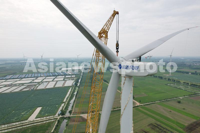 安徽阜阳:安装风电机组助力绿色新能源发展 查看组图
