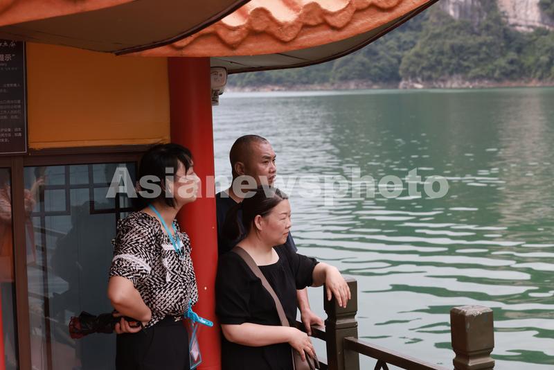 7月13日,游客在湖北省长阳县清江画廊景区乘船游玩。