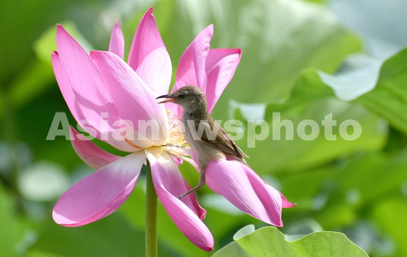 2023年7月14日,盛夏时节,河北省邯郸市龙湖公园荷塘里荷花竞相绽放,大苇莺在层层叠叠的荷叶中穿梭飞行、歌唱、觅食,呈现出夏日的诗画意境。