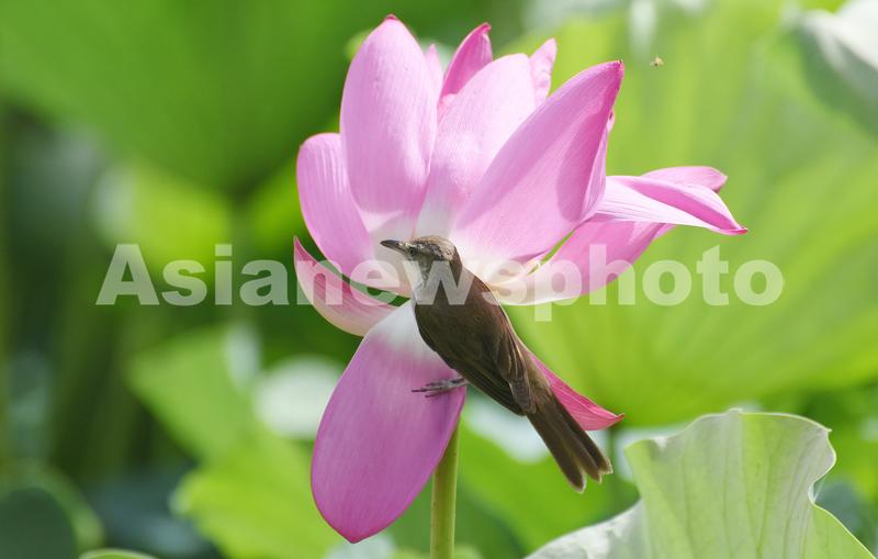 2023年7月14日,盛夏时节,河北省邯郸市龙湖公园荷塘里荷花竞相绽放,大苇莺在层层叠叠的荷叶中穿梭飞行、歌唱、觅食,呈现出夏日的诗画意境。