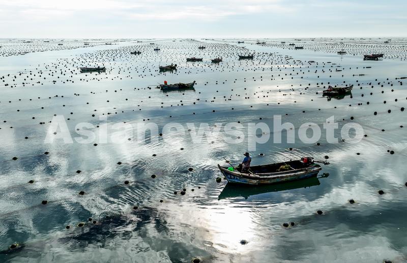 2023年7月17日,在山东省荣成市俚岛湾海域,渔民驾驶渔船在蓝天、白云倒影下的海洋牧场进行养殖作业,渔船似在云中仙境行驶,与大海、蓝天交相辉映,形成一幅大气磅礴、绚丽多姿的生态画卷。荣成市是国家级海洋经济发展示范区,全市海水养殖面积57万亩,拥有30多个养殖品种,形成鱼虾贝藻多品种、立体化的养殖格局。