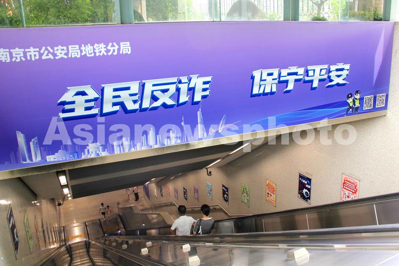 2023年7月12日,南京新亮相的反诈主题地铁站草场门站。