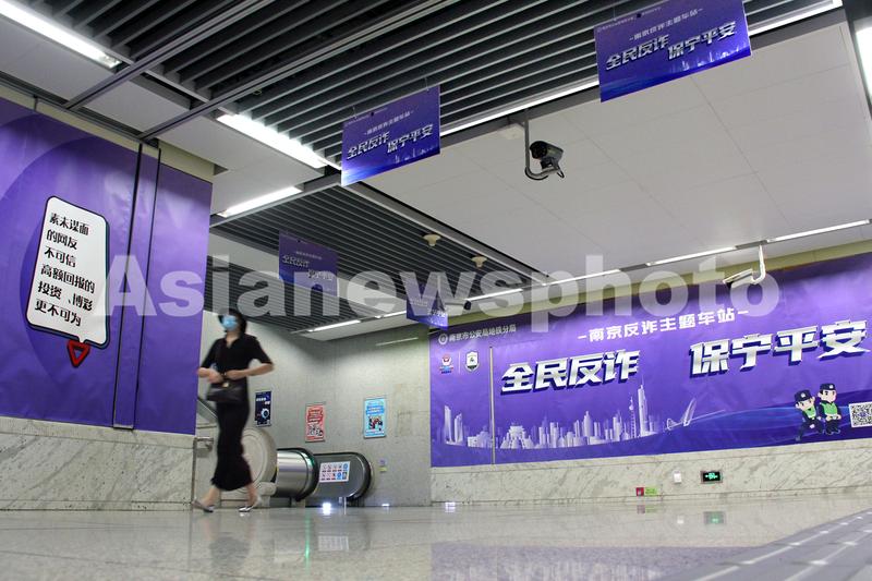 2023年7月12日,南京新亮相的反诈主题地铁站草场门站。