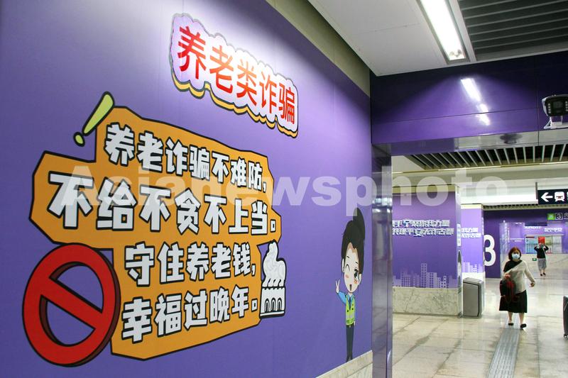 2023年7月12日,南京新亮相的反诈主题地铁站草场门站。