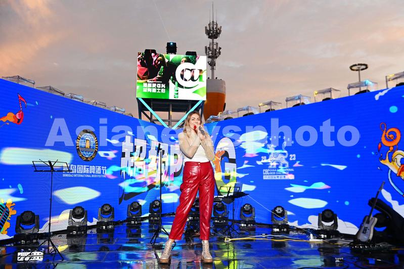 2023年7月16日,山东青岛金沙滩啤酒城,外籍歌手在“啤酒PENG”演出。