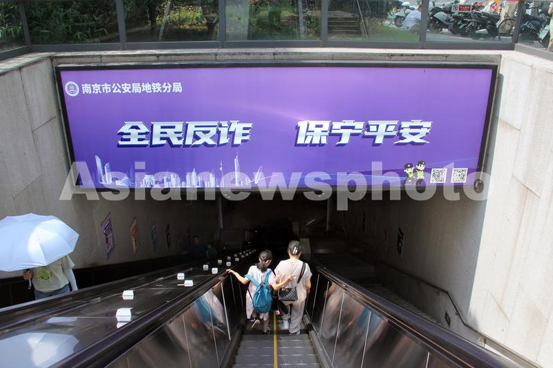 2023年7月12日,南京新亮相的反诈主题地铁站草场门站。