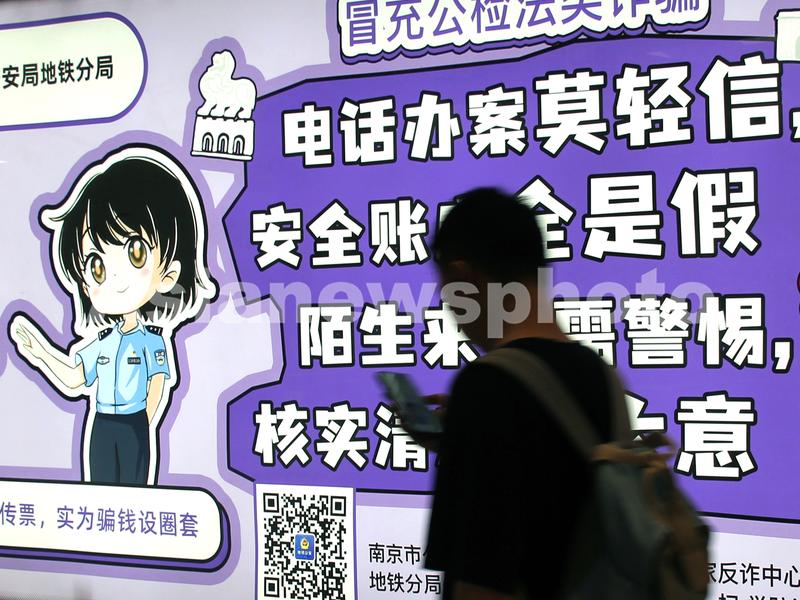 2023年7月12日,南京新亮相的反诈主题地铁站草场门站,站区内全覆盖布置了简明生动、针对性强的漫画图文和标语警句,充分利用地铁乘客候车的“碎片化”时间,普及反诈知识,宣传防范技巧,提高识别能力和防范意识。