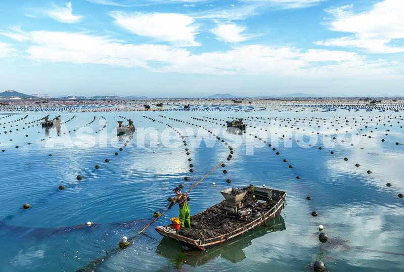 2023年7月17日,在山东省荣成市俚岛湾海域,渔民驾驶渔船在蓝天、白云倒影下的海洋牧场进行养殖作业,渔船似在云中仙境行驶,与大海、蓝天交相辉映,形成一幅大气磅礴、绚丽多姿的生态画卷。荣成市是国家级海洋经济发展示范区,全市海水养殖面积57万亩,拥有30多个养殖品种,形成鱼虾贝藻多品种、立体化的养殖格局。