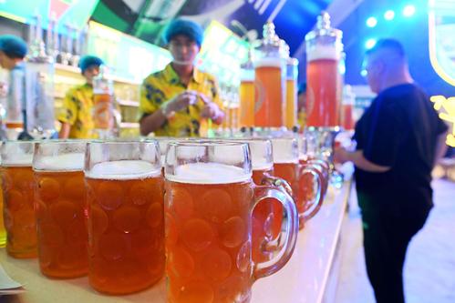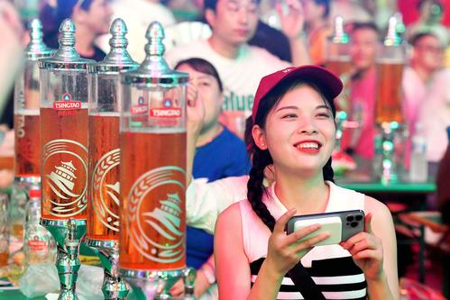 2023年7月16日,正在山东青岛金沙滩啤酒城举办的第33届青岛国际啤酒节迎来首个周日,数万市民和游客进入啤酒城游玩,品尝各地美食,畅饮国内外啤酒,参与时尚文化体育活动,伴随清凉海风在音乐声中度过美好的盛夏夜晚。