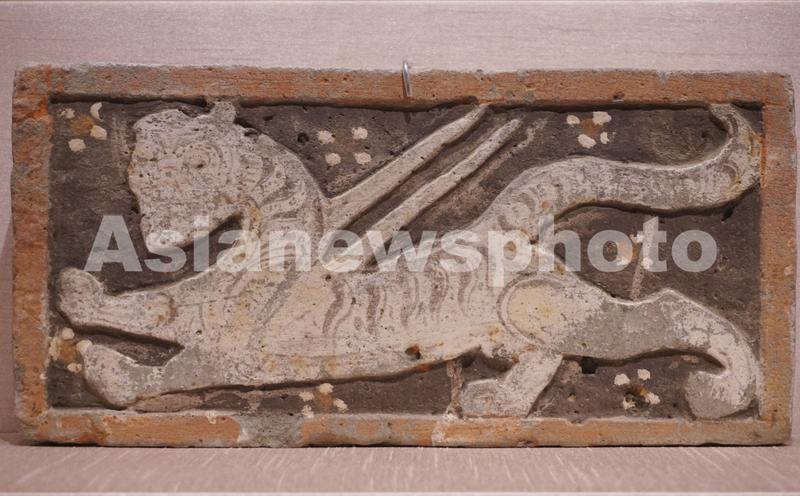 2023年7月18日,在中国丝绸博物馆拍摄到的西晋白虎绘像砖。