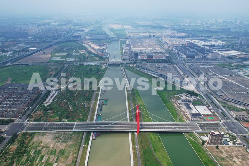 图片说明:2023年7月18日,船舶行驶在京杭运河杭州段二通道上。