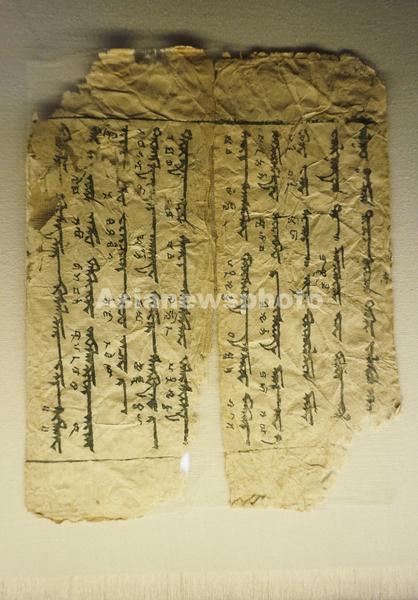 2023年7月18日,在中国丝绸博物馆拍摄到的元代回鹘文《大乘无量寿经》。