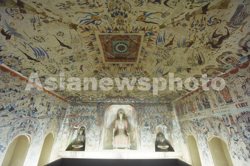 2023年7月18日,在中国丝绸博物馆拍摄到的采用数字技术等比例复原的敦煌第285窟,该窟开凿于西魏大统四年(538年),是敦煌莫高窟中最早有确切开凿年代的洞窟,有“中国的万神殿”之称。