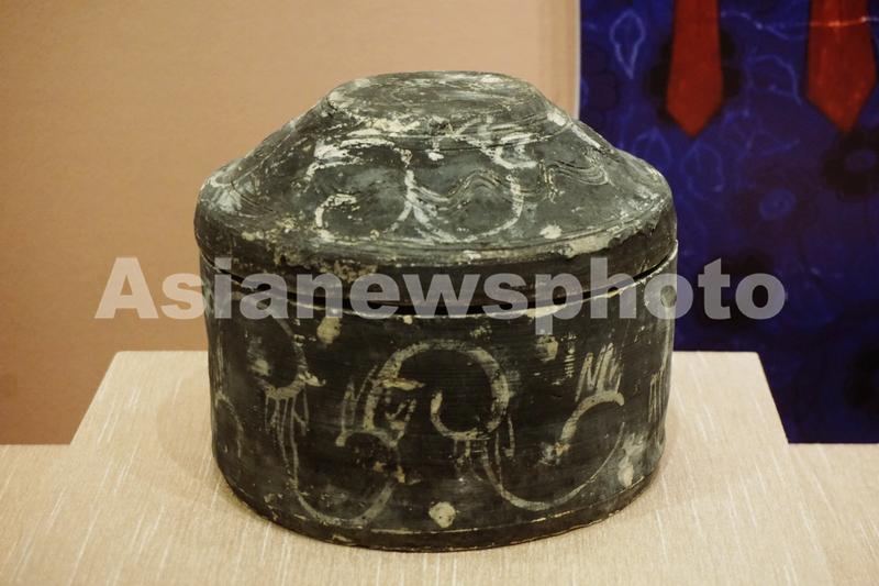 2023年7月18日,在中国丝绸博物馆拍摄到的晋代彩绘陶奁。