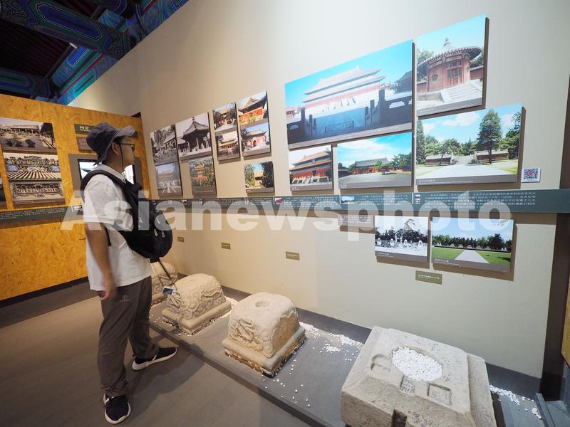 2023年7月19日,游客在北京古代建筑博物馆内参观游览。