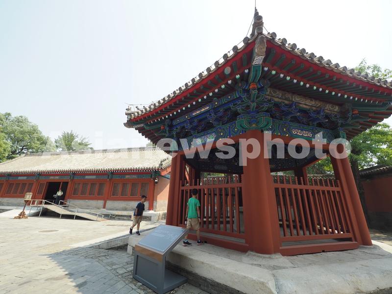 2023年7月19日,北京古代建筑博物馆,游客在参观游览。