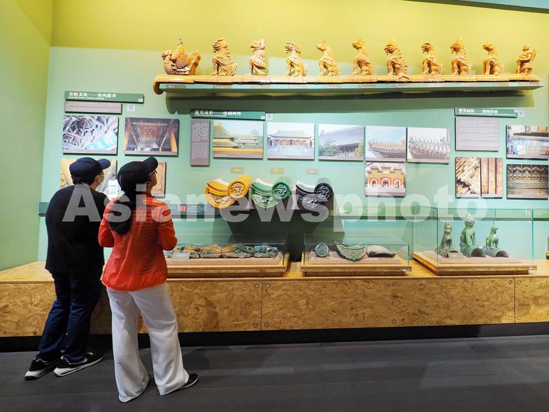 2023年7月19日,游客在北京古代建筑博物馆内参观游览。