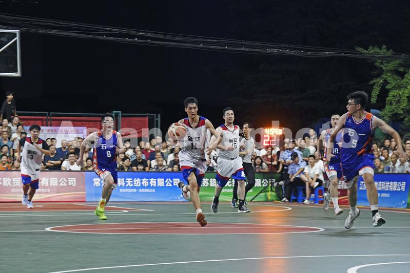 图片说明:2023年7月23日晚,常州经开区横山桥镇“新安杯”夏季篮球联赛激情开打,来自全镇各个村、企业、学校以及本地的运动爱好者组建的参赛队伍将在“村BA”的赛场上酣战一个月,点燃夏夜激情。