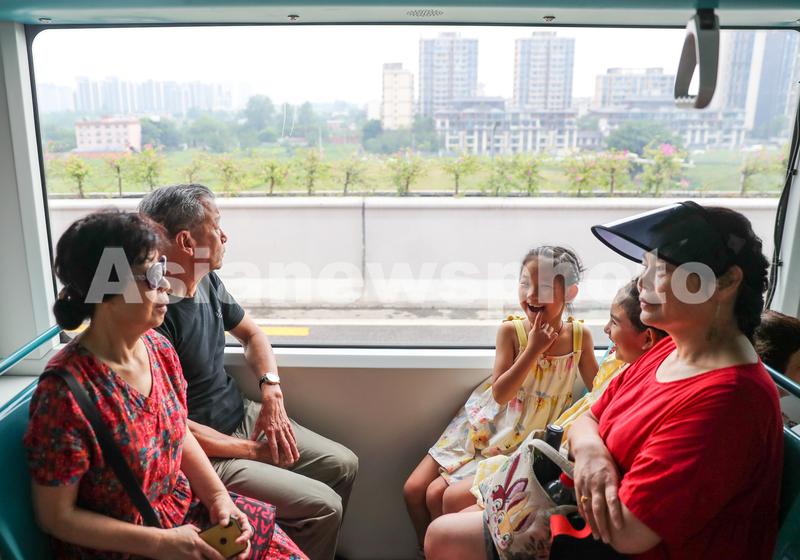 图片说明:2023年7月25日,在四川省成都市,市民乘坐智轨电车前往成都第31届世界大学生夏季运动会比赛场馆东安湖站。