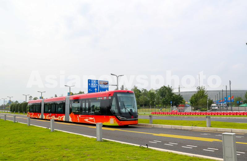 四川成都:“宜宾造”智轨电车驶向大运会 查看组图